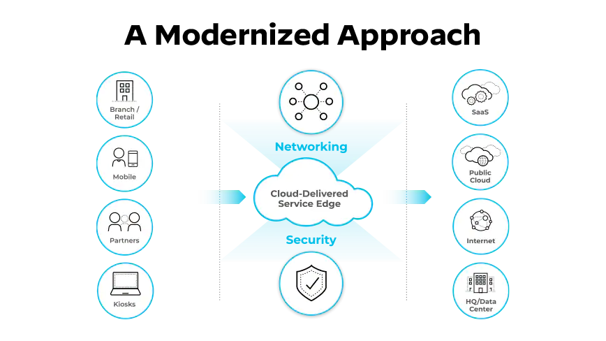 The SASE model for secure remote access migrates enterprises away from a perimeter- and hardware-based network security approach to one that provides secure remote access to corporate applications, data, and tools for a dispersed workforce that works from anywhere—their homes, branch offices, or corporate headquarters.